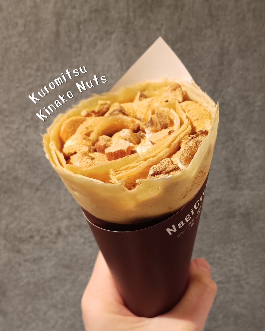 きな粉の和の香りがふわっと香りつつ、ざくざく食感も楽しめるおすすめクレープです。